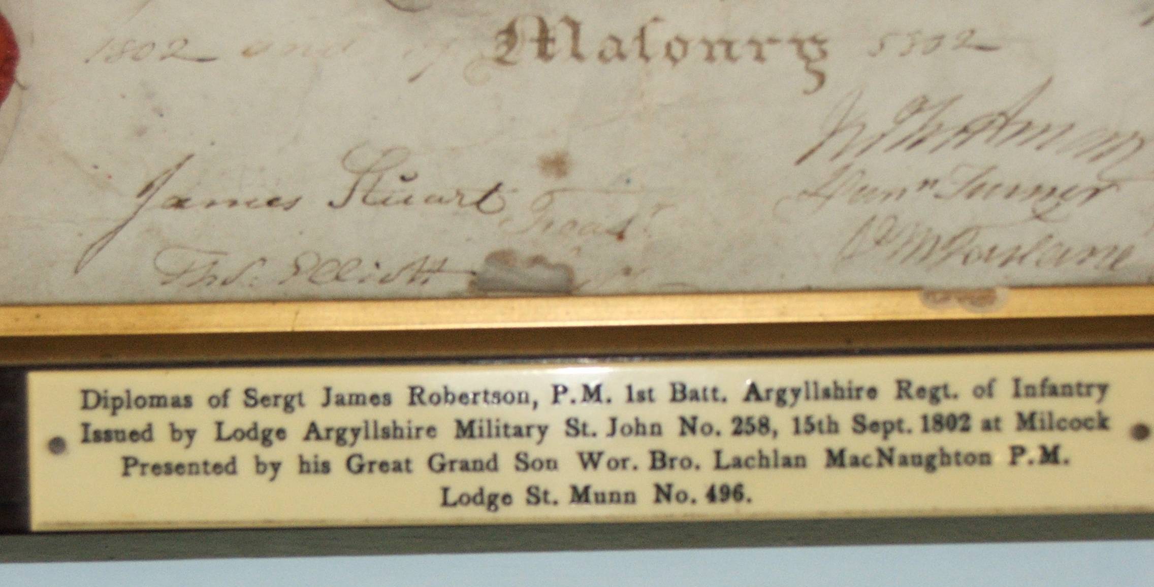 Old Masonic Artefact kept within Lodge Rothesay St John No 292
